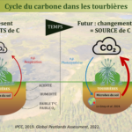 Les tourbières, bien qu’elles ne couvrent que 3 % de la surface terrestre, stockent près de 30 % du carbone mondial (500–1 000 GtC) et jouent un rôle majeur dans la régulation du climat. Le changement climatique pourrait cependant les transformer en sources de carbone. L’augmentation des températures et la répétition des épisodes de sécheresse sont susceptibles de stimuler l’activité microbienne, ce qui entraînerait une hausse des émissions de gaz à effet de serre (CO₂, CH₄, N₂O). Comprendre la réponse des communautés microbiennes est donc essentiel. Des travaux récents montrent que le changement climatique modifie la diversité et l’abondance des communautés microbiennes, affectant la structure des réseaux trophiques et, par conséquent, les fonctions clés telles que la décomposition de la matière organique. Ces réseaux interagissent également étroitement avec les sphaignes, espèces ingénieures essentielles, mais leurs mécanismes d’interaction restent encore mal compris.